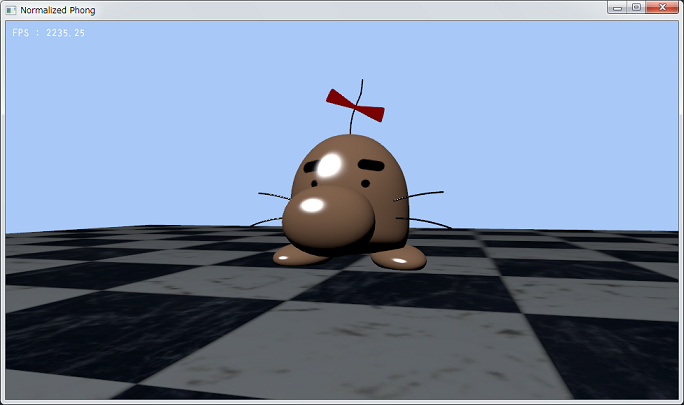 上述の式から,正規化係数が(n+1)/2πと求まりましたので,この値を使ってPhongシェーディングを正規化します。